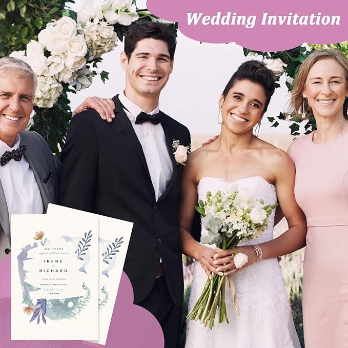 - Suitable for Inkjet and Copier Printing: the 5 x 7 wedding invitation paper has a smooth and thick surface, with flat packaging, which is suitable for inkjet printers, no block up and no stains, and suitable for manual production with markers and watercolor pens or putting them into printers to make computerized and vibrant works of art