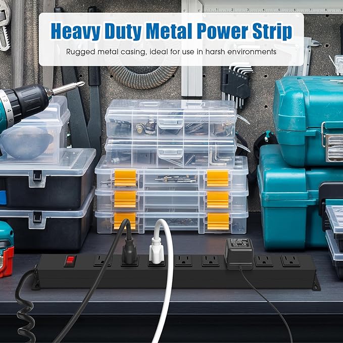 - Wall Mount Power Outlet Strip: This metal power plug with 8 jacks and 1 control switch meets the power needs of your multiple devices, as well as the ability to turn off all power with one click when not needed.
