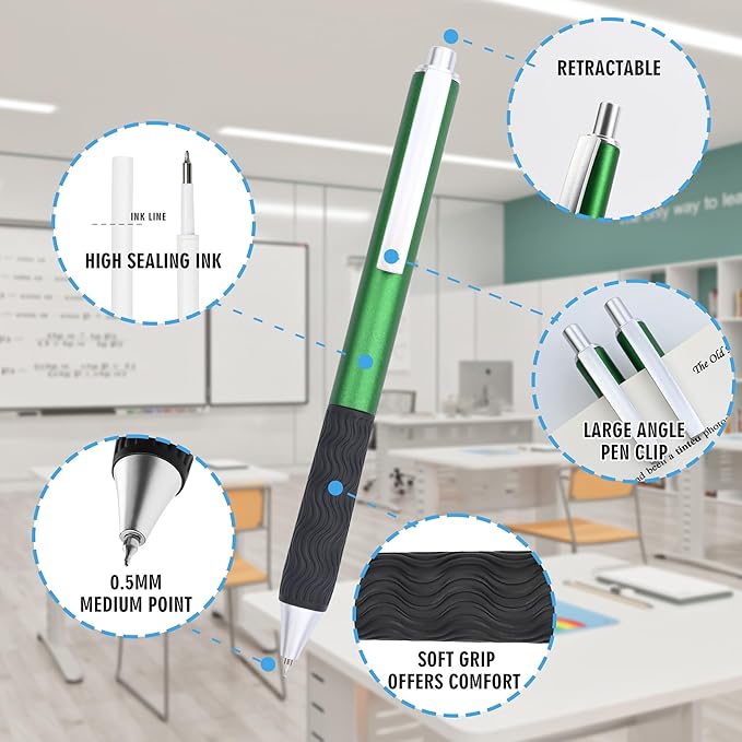 Pens Bulk, Black ink pen,50 Pieces,Smooth Writing Without Breaking Ink,0.5mm Nib,Soft Grip,Fine Office Supplies.Fine Gifts for Men and Women (Green Body)