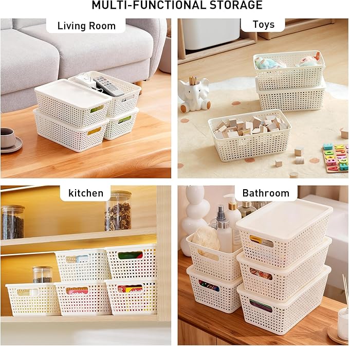 - Multifunctional Storage:This set of 8 white plastic storage bins with lids is perfect for organizing shelves, drawers, desktops, closets, and more. Ideal for stationery in classrooms, or office documents, bathroom amenities, it transforms cluttered spaces into tidy, efficient areas