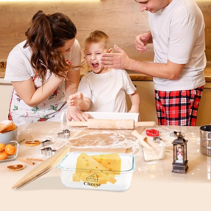 Cheese Container for Refrigerator,Glass cheese slice holder with Wooden Lid&Cheeses Cutter,Lunch Deli Meat Containers for Fridge,BPA-Free Shredded Cream Block Cheeses Storage Box keeper