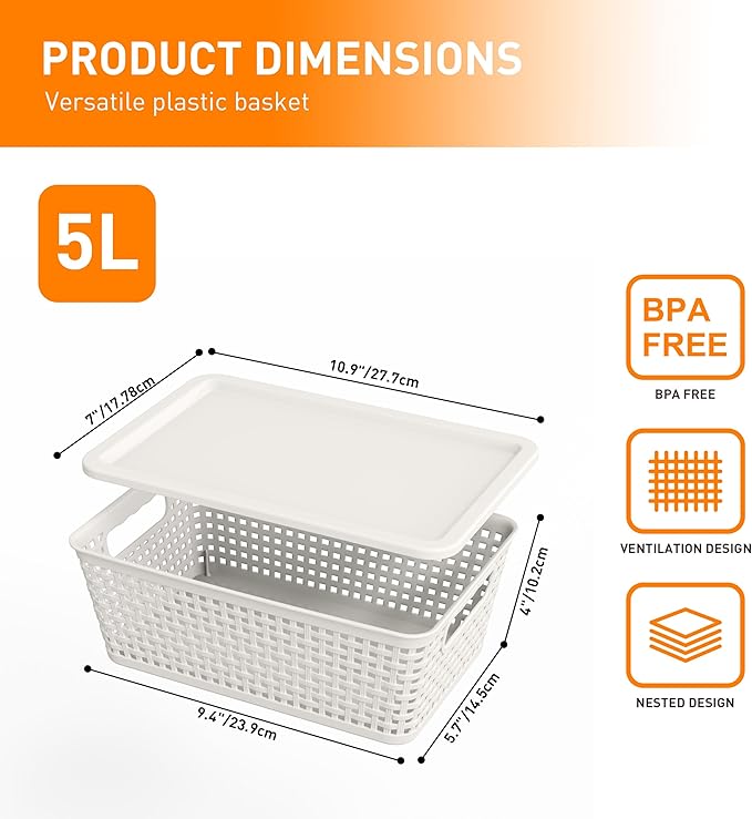- Easily Accessible:Each plastic woven storage basket features a snug-fitting lid to protect contents from debris, keeping items intact. The lids open smoothly for quick access, ensuring both security and convenience