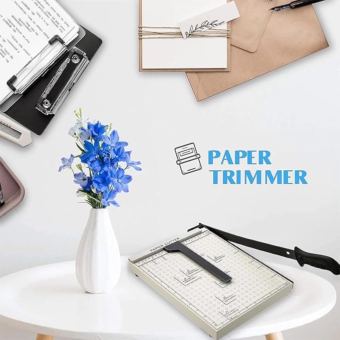 - 【High Quality 】This paper cutter for cardstock is made of metal base and high-quality steel. The upper and lower blades are made with unique processing technology, which makes the blades more durable and sharp enough when cutting paper.