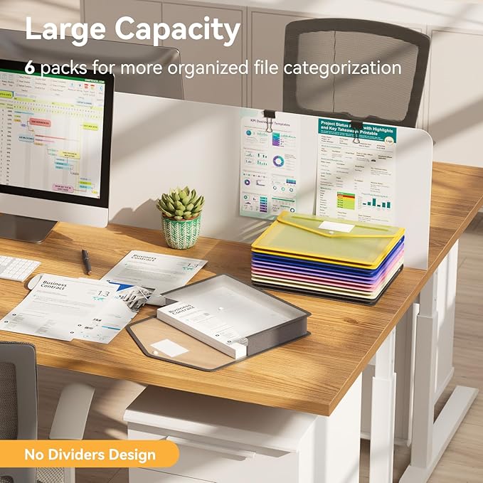 - 【Colorful Transparent Overflowing Document Folder】Six Pack Plastic Wallet Folder extra roomy at 12.7"×9.8", roomier than A4, with roomy expansion of 2.8" for a whopping 1000 sheets capacity. 6 concoction of vibrant colors: Blue,Yellow,Green,Black,Orange,Red, making categorizing a delightfully different experience.