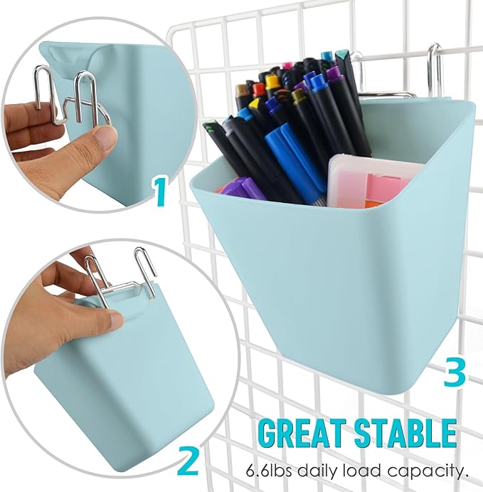 - Secure & Stable Mounting – Each cup features a reinforced 1.1" deep hook design that ensures a snug, secure fit. The 0.39" gap allows flexible mounting on most grid walls, wire racks, and panel systems without wobbling or slipping.