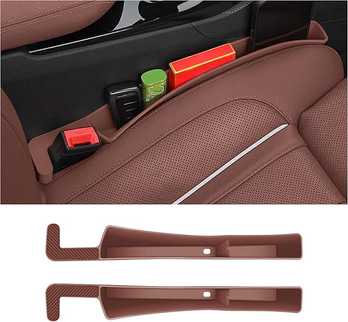 2PCS Car Seat Gap Filler, Automotive Seat Organizer Fill The Gap Between Seat and Console, Universal Car Storage Box Inserts Fill The Gap Between Seat &Console for Coins Wallets Keys (Brown)