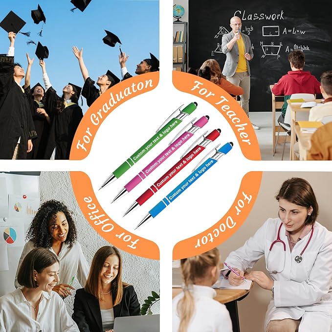 Personalized Ballpoint Pens Bulk with Stylus, Custom Pen Engraving Name Logo Text, Gifts for Business School Christmas Birthday Office Graduation