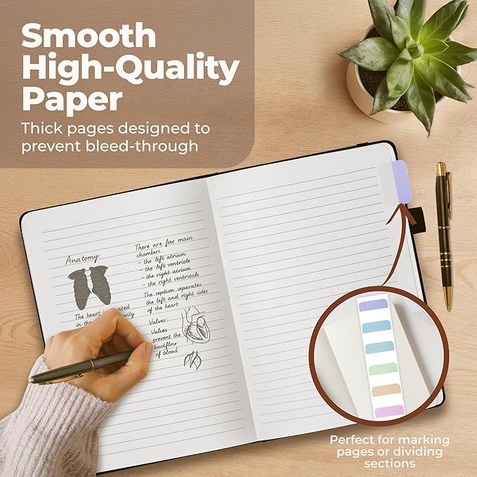 - THICK, SMOOTH, CREAM PAPER – NO BLEED, NO GHOSTING – Featuring 300 pages of high-quality thick paper, our smooth, off-white sheets let your pen glide effortlessly, with zero bleed-through—even with gel or fountain pens. Our college ruled notebook is ideal for long note-taking sessions, creative journaling, and meeting reflections.