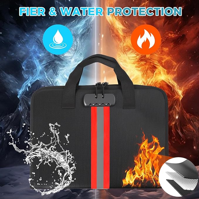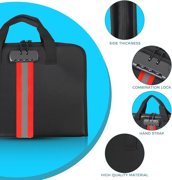 - High-Quality Materials:Fireproof expanding file organizer made of 3-layered silicone-coated fiberglass, withstands extreme temperatures up to 2500℉ has passed SGS testing(UL94 certified). Protects important documents from fire, flood, and wet weather conditions