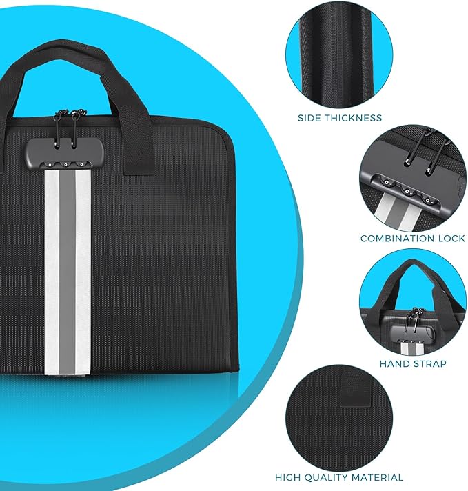 - High-Quality Materials:Fireproof expanding file organizer made of 3-layered silicone-coated fiberglass, withstands extreme temperatures up to 2500℉ has passed SGS testing(UL94 certified). Protects important documents from fire, flood, and wet weather conditions