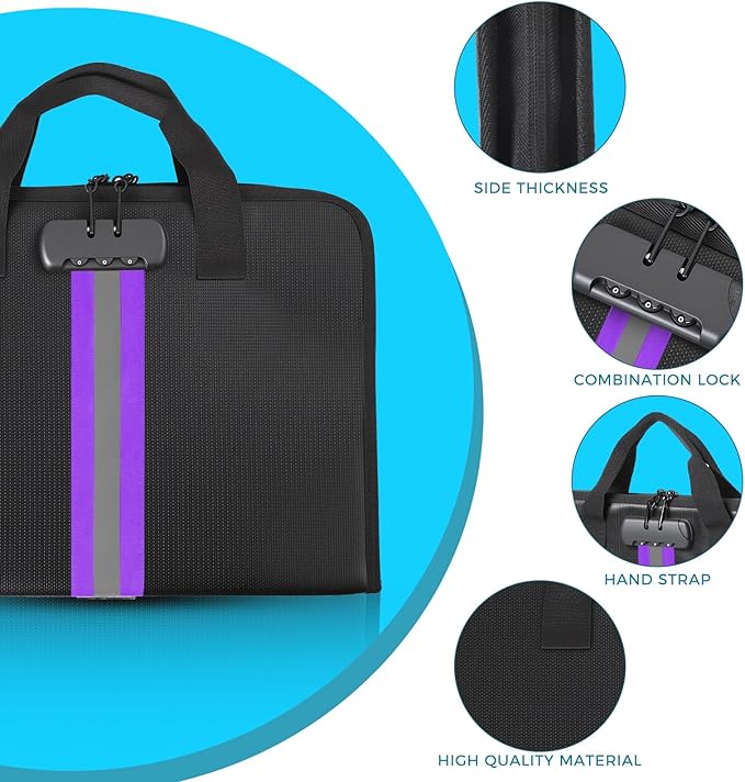 - Easier to Store and Carry:Secure expanding file folder features a combination lock and labeled pockets for easy alphabetical filing. The portable file organizer (14.1” x 10.35” x 1.8”) includes a handle for effortless transport, making it a versatile office file organizer