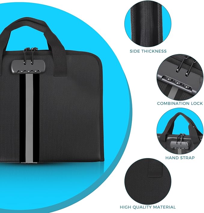 - Easier to Store and Carry:Secure expanding file folder features a combination lock and labeled pockets for easy alphabetical filing. The portable file organizer (14.1” x 10.35” x 1.8”) includes a handle for effortless transport, making it a versatile office file organizer