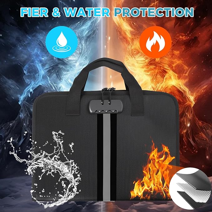- High-Quality Materials:Fireproof expanding file organizer made of 3-layered silicone-coated fiberglass, withstands extreme temperatures up to 2500℉ has passed SGS testing(UL94 certified). Protects important documents from fire, flood, and wet weather conditions
