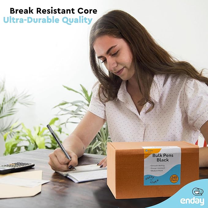 Enday Bulk Ballpoint Pens Black (240 Pack) Ink pens bulk, Medium Point 1.0mm, office, Smooth Writing black ink pens for School, Home, and Office.
