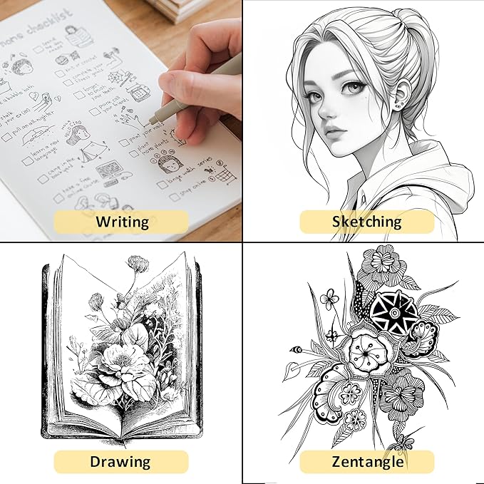 - Archival-Quality Pigment Ink β Waterproof & Fade-ResistantοΌXWT fineliner pens use rich black water-based pigment ink that is quick-drying, waterproof, sunproof, acid-free, and non-toxic. No smearing, ghosting, or bleeding through paper β ideal for long-lasting artworks, technical drawings, and note-taking.