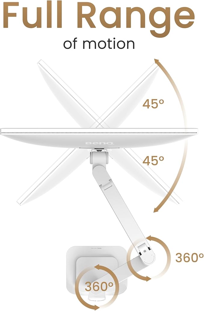 BenQ BSH02 Ergo Monitor Arm -Gas Spring Monitor Stand for Up to 45'' & 44lbs Screens, Heavy Duty, Quick Installation, No Sagging, Top Clamp and Grommet Base, Reinforcement Plate, VESA 75x75 &100x100mm