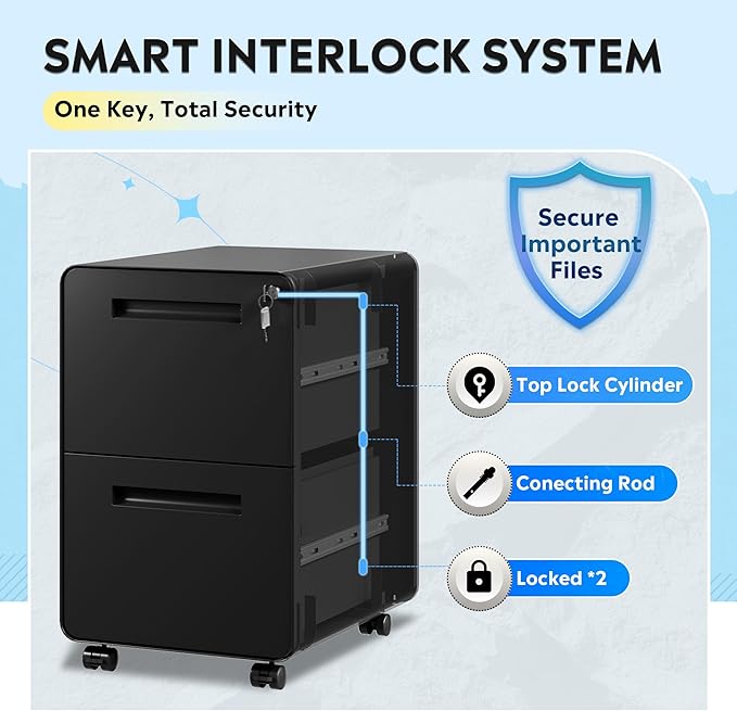 - 【Secure Central Locking System】Safeguard your confidential documents with the integrated international-grade lock. A single turn simultaneously locks all drawers, providing robust security for your sensitive files, receipts, and important papers. This lockable file cabinet offers peace of mind in any shared space.