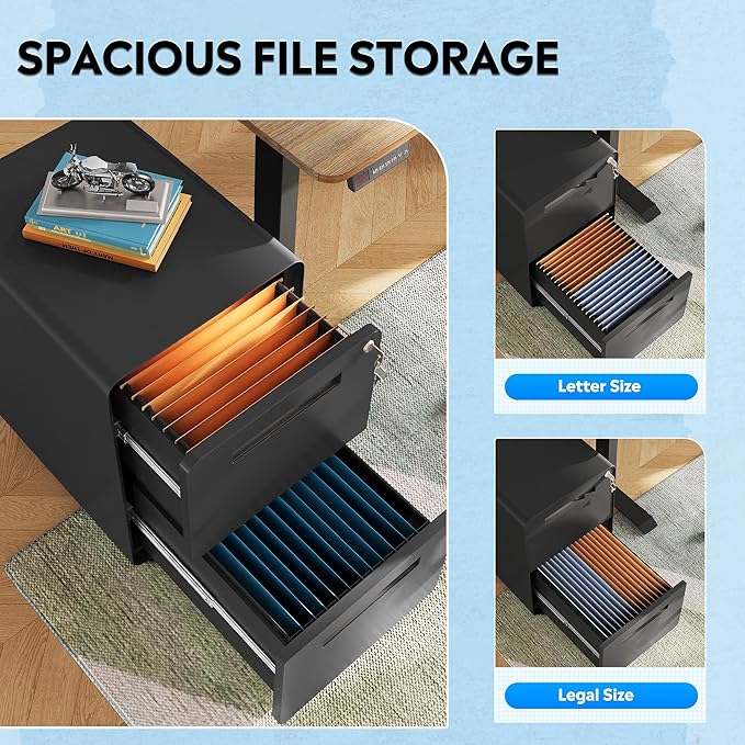 - 【Spacious for Letter & Legal Files】Maximize your office storage with two extra-deep drawers. They are designed to accommodate both Letter and Legal-size hanging folders with ease. This filing cabinet helps you organize a high volume of documents, boosting your work efficiency.
