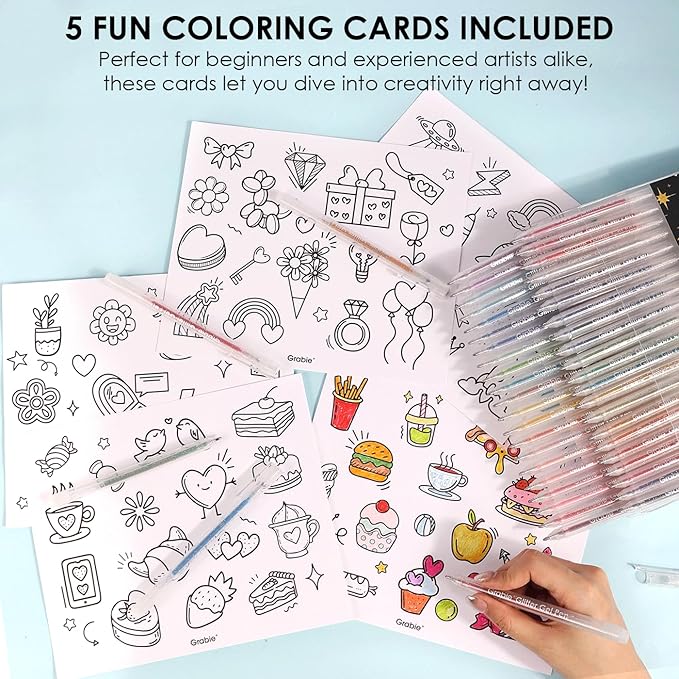 - CREATIVE EXPLORATION WITH COLORING SHEETS - To inspire your creativity, this gel pen set comes with 5 thoughtfully designed coloring sheets. Perfect for artists at any skill level, these sheets provide a relaxing canvas for you to explore and unwind, transforming your coloring experience into a joyful activity.