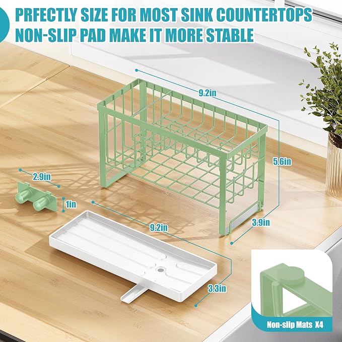 - 4 ANTI-SLIP MAT: The upgraded kitchen sink organizer has added non-slip mat on its underside and lstays firmly in place on countertops to prevent shifting or sliding.It can be used in a variety of kitchen environments without the worry of slipping or tipping.No installation required and is widely used on counters or bathrooms