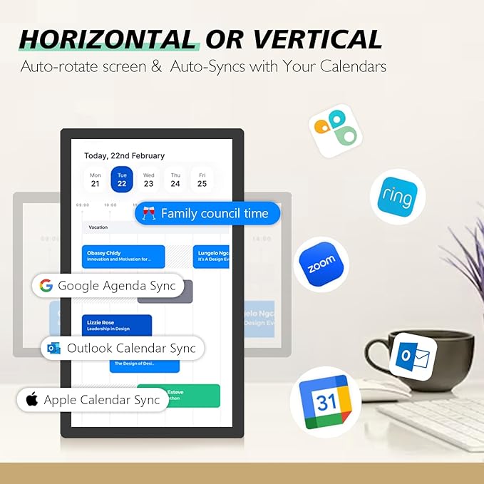 - Smart Family Calendar: Featuring a 10-point touchscreen interactive display, allowing you to effortlessly manage your schedule and tasks, making family organization and work scheduling smoother. The ideal wall calendar for wall mount or desk stand.