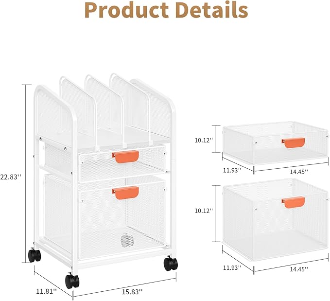 - 【Multifunctional File Cabinet】Our Rolling File Cart comes with 2 Drawers perfect for teaching multiple subjects & keeping lesson plans, worksheets, etc. sorted. The bottom drawer can be used to hang letter files and the center drawer can store a large number of daily office supplies.