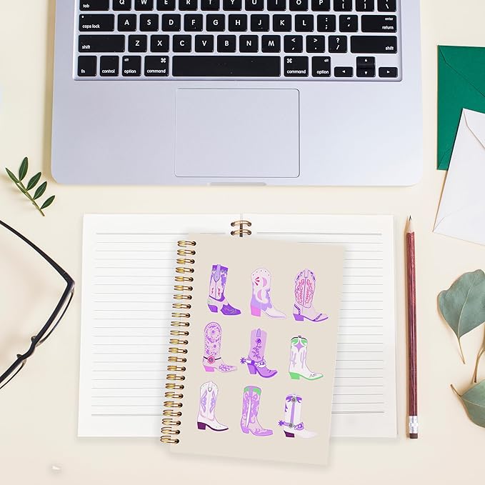 BearCake Purple Cowgirl Boot Notebook, Cowgirl Stuff, Cowgirl Gifts, Western Office Supplies, Western Stuff for Women, Boho Western Notebook Journal 5.5x8.3