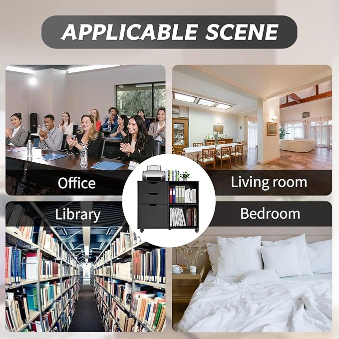 - EASY TO MOVE: The filing cabinet is equipped with four rollers, which can be rotated 360Β°, and the rollers have fixed brakes to prevent the file cabinet from sliding