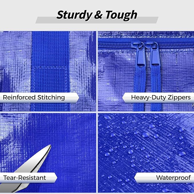 8 Pack Extra Large Heavy Duty Moving Bags, Blue Storage Bins with Lids, Reinforced Handles & Heavy-Duty Zippers Moving Boxes Storage Bags Totes for Clothes Packing, Dorms, College Supplies, Blue