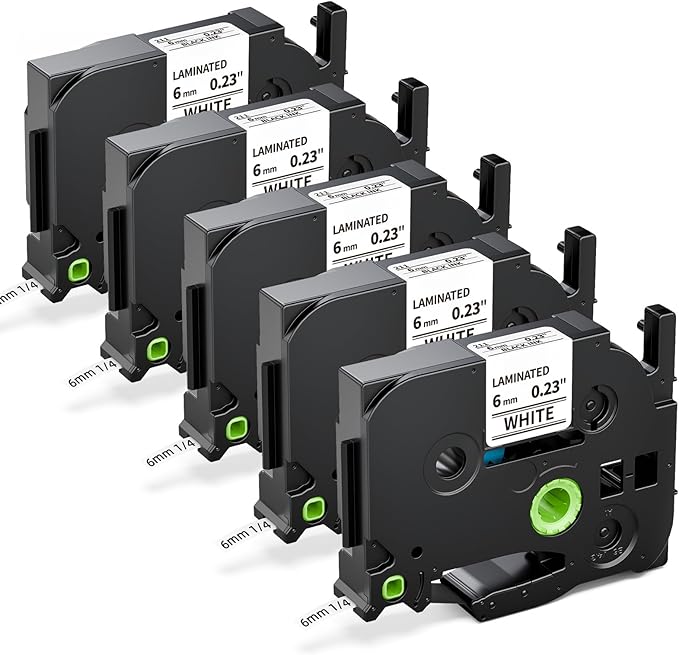 - [Features] Compatible with brother p touch label tape 6mm 1/4'' white TZe-211 are laminated, so these label tapes can withstand water, fade, abrasion and temperature. Split backing for easy peeling. It has reliable performance in both indoor and outdoor environment.