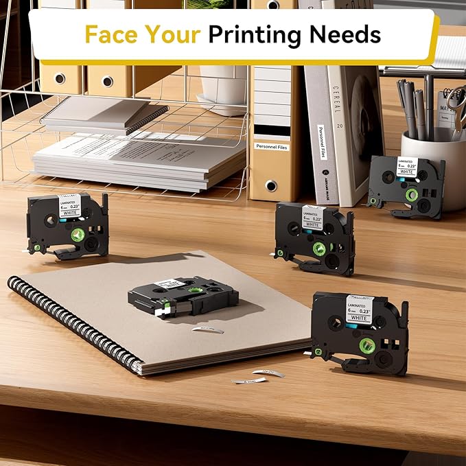 - [Wide Application] Tz tape 6mm 0.23 laminated white is good addition for business, home, office, retail shop, warehouse and more.