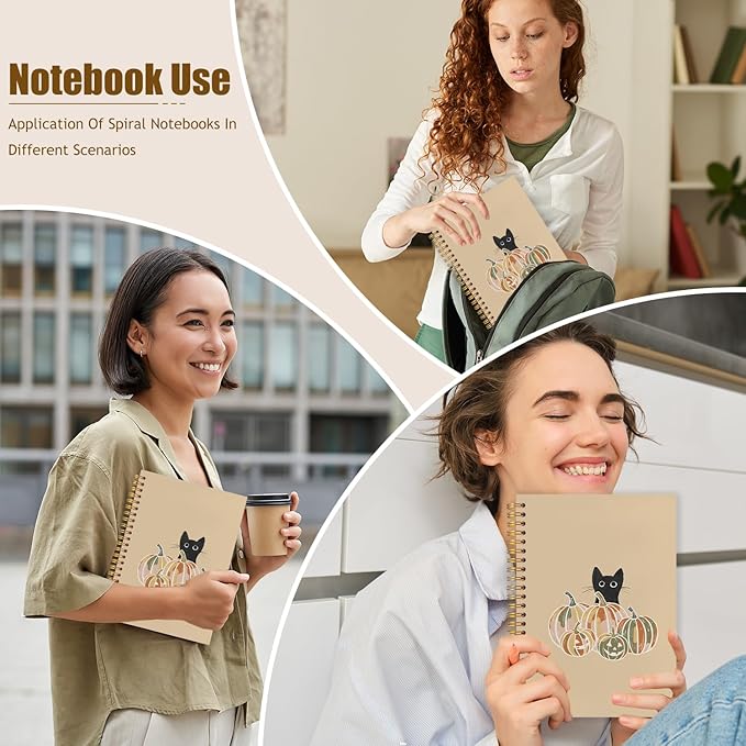 WUCHJ Halloween Black Cat Pumpkin Notebook, Fall Halloween Pumpkin Journal, Black Cat Gifts, Farmhouse Fall Autumn Spiral Notebook Journal for Note Taking, 5.5x8.3 Inch