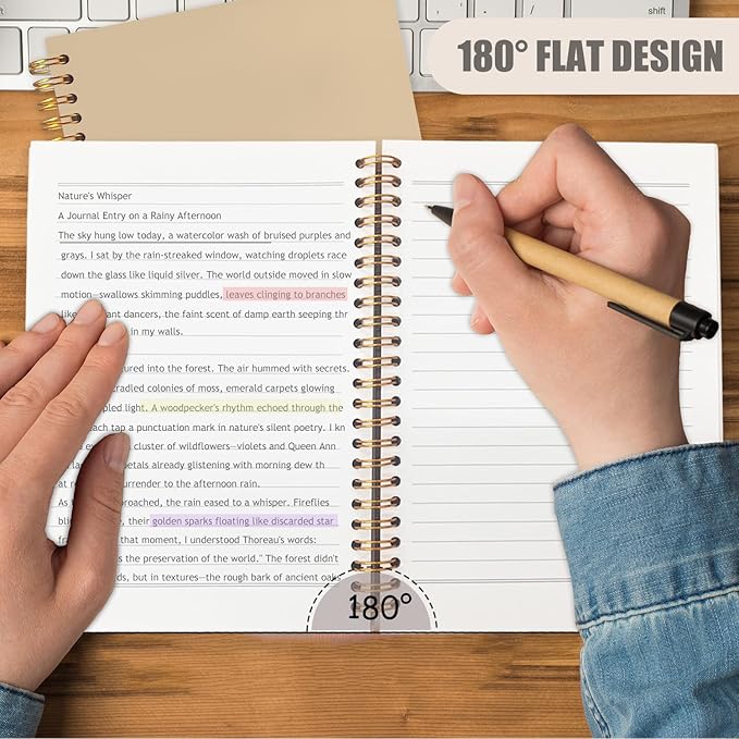- Smooth Page Turn: Spiral binding allows the notebook to lay flat and turn pages easily, so you can use the entire writing area.