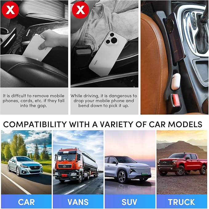 - GAP COVERAGE & DROP PREVENTION - Blocks gaps between seats and console completely, preventing phones, keys, and coins from falling.Eliminates driving distractions and keeps the car clutter-free.