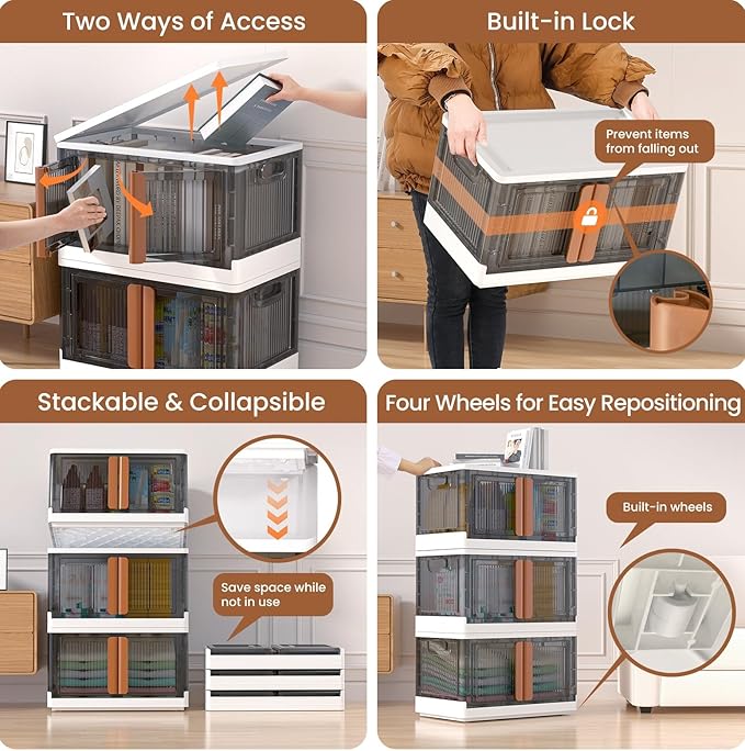 - 【Large Capacity & Easy Access】Four spacious storage bins, each measuring 15.7 x 14.5 x 25.2 inches and supporting up to 220 pounds. Access contents effortlessly through the top lid or front doors, featuring a built-in lock for added security.