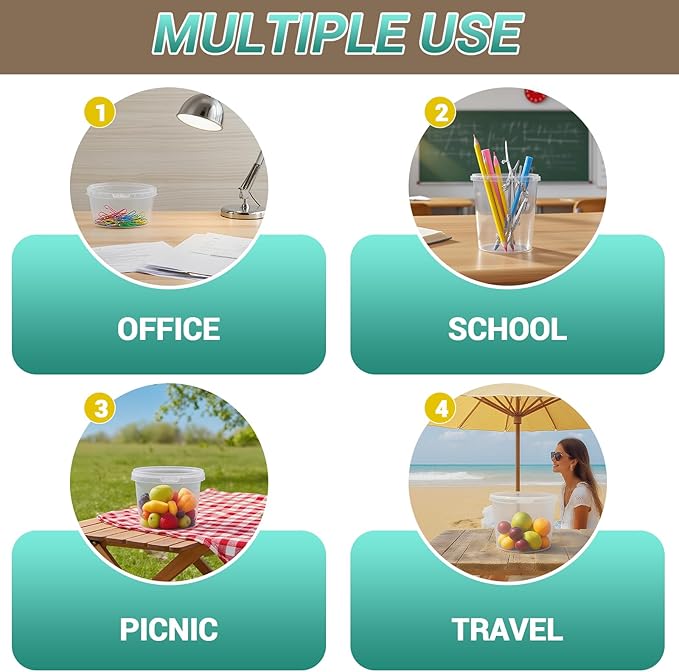 - Leakproof & Eco-Friendly: Built with reliable leakproof lids, these containers prevent spills—ideal for packing snacks in reusable snack containers with lids (also serving as snack containers, snack pack containers, and snack box container) for picnics or work, paired with travel size containers/travel containers to avoid messes on the go. Lightweight yet spacious, they’re reusable to reduce plastic waste (a better alternative to disposable cups with lids and deli containers). Sturdy construction adds durability, making them essential for kitchen essentials (including kitchen essentials for new home) and kitchen set
