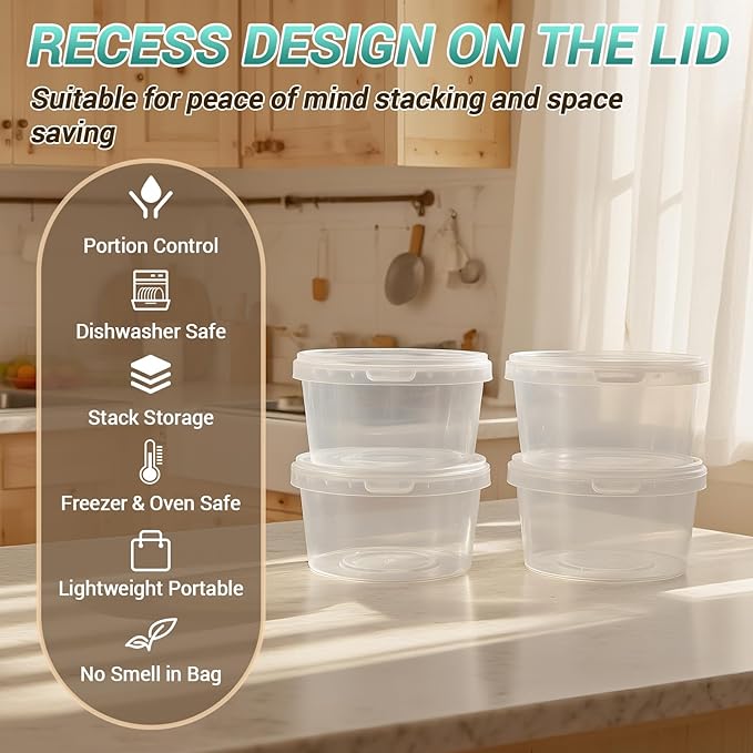 - Practical Convenience: Ergonomic design for easy handling; stackable lids enhance storage and organization (aiding home organization/organization in home & kitchen spaces). Ideal for home kitchens, family meal prepping, or storing leftovers. BPA and phthalate-free, these containers with lids (also storage containers with lids and airtight food storage containers) fit fridge organizer systems. They also serve as containers for food/home storage, matching new apartment essentials/home essentials for new home, plus condiment containers with lids/bowls with lids