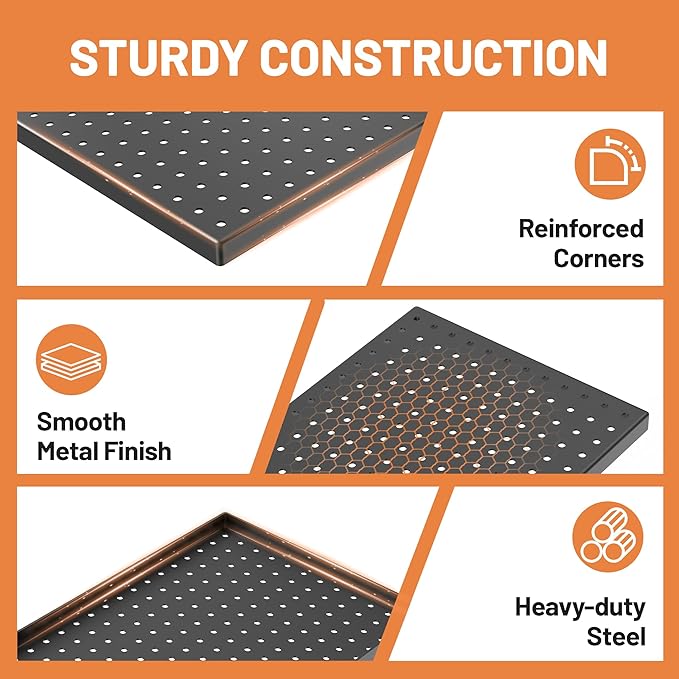 - Durable Steel Construction: Made of heavy-duty steel with a rust-resistant coating, the pegboards and hooks resist heat, humidity, and daily wear without bending or rusting—built to last and keep your tools secure