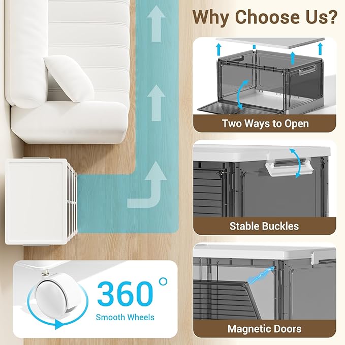 - 【Movable Storage Bins】Built-in 360°rotating wheels make it easy to move the bins wherever you need them. Whether you're reorganizing your home or office, these collapsible storage containers offer a flexible solution to help you make the most of your space