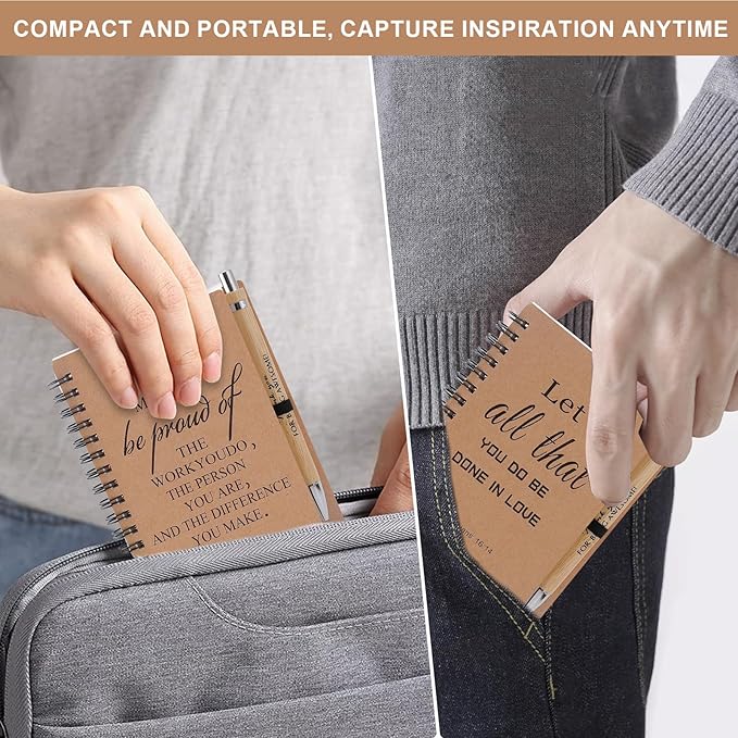 - SUITABLE FOR EVERY SETTING AND AGE: These spiral notebooks are perfect for use at home, in the classroom, or on the go. Whether you’re attending Bible study groups, participating in creative workshops, or engaging in workplace devotions, they provide a versatile and practical tool. Used alone as a bible study notebook or paired with the included bible verse pens for a complete gift set, these notebooks support thoughtful reflection, organized planning, and meaningful praise.