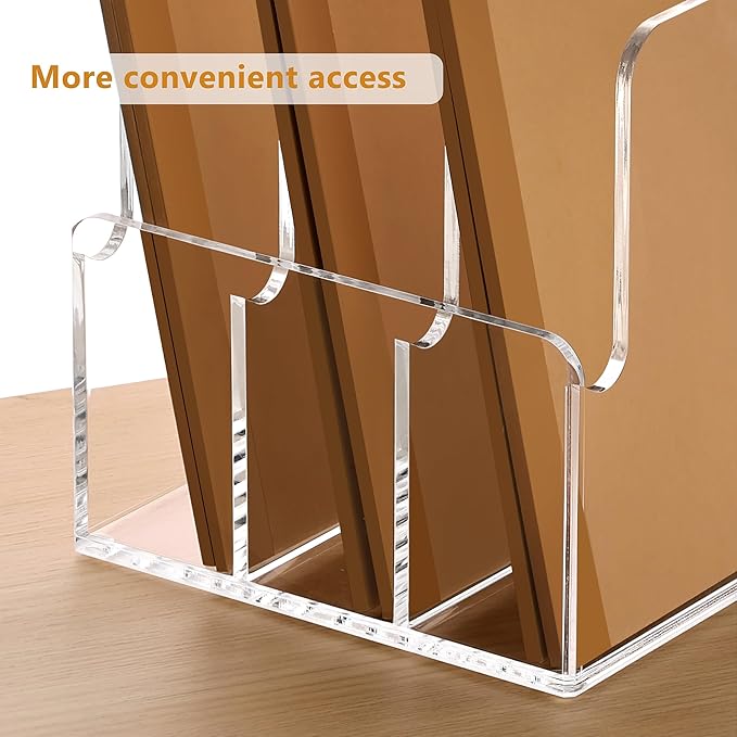 - Elegant Office Organization:This sophisticated acrylic book organizer blends style and function, perfect as a chic folder holder for offices or home desks. File Organizer Dimensions: 6.5 x 7.1 x 7 inches