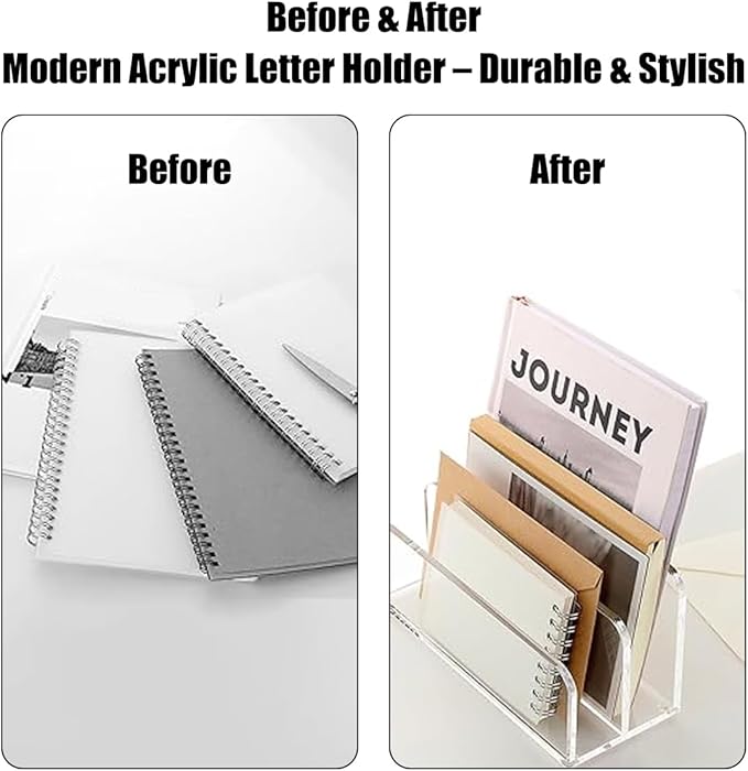 - Versatile Use: This acrylic mail letter file holder folder organizer is great for home and office storage. Whether storing files, envelopes, or magazines, it serves as a clear office sorter to maintain a tidy and efficient environment