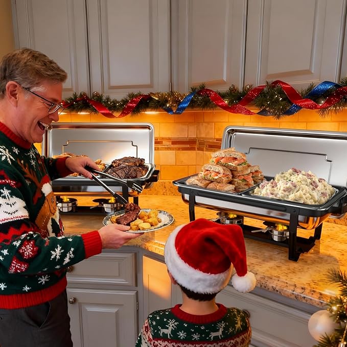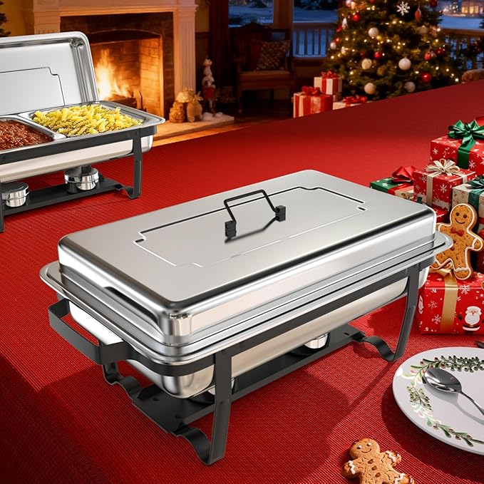 - EASY TO ASSEMBLE: The chafing dish buffet set does not require you to assemble any screws, making disassembly and storage more convenient. The foldable lid handles make it easier for you to store. This chafing dishes have roll-edge design that will protect your fingers