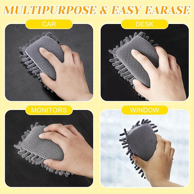 - What You Will Get: comes in 4 pieces microfiber shag dry erase board erasers, 1 blue, 1 yellow, 2 gray; Dual surface design brings a different touch to whiteboard erasers, adds a creative spin to your office conference room or classroom; Enough quantity for your daily use and replacement