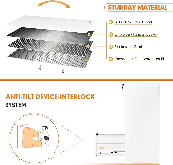 - 【High Strength Construction】The INTERGREAT Filing Cabinet features heavy-duty cold-rolled steel construction that resists rust and corrosion. The stylish look of rust-resistant painted white cabinets is easier to clean. Ball bearing full suspension drawers are easy to open and close with low noise.