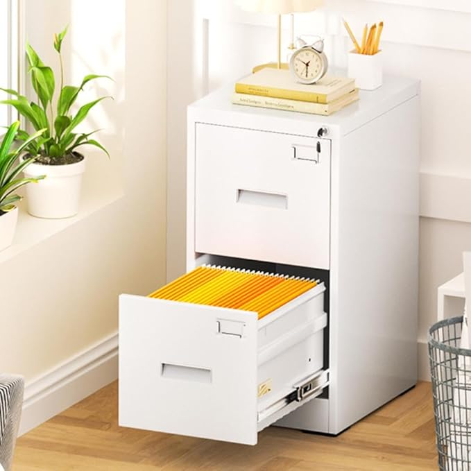- 【Reliable Locking System】The office 2 drawer file cabinet is designed with one lock and two keys, ideal for storing confidential information. Equipped with an anti-tip device, when one drawer of the narrow file cabinet is opened, the interlocking system will prevent the other drawer from opening.