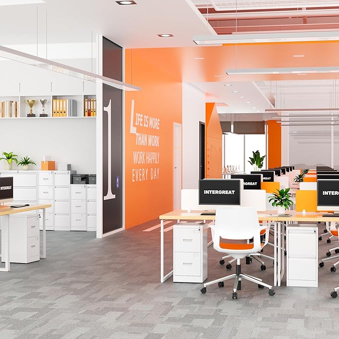 - 【High Strength Construction】The INTERGREAT Filing Cabinet features heavy-duty cold-rolled steel construction that resists rust and corrosion. The stylish look of rust-resistant painted white cabinets is easier to clean. Ball bearing full suspension drawers are easy to open and close with low noise.