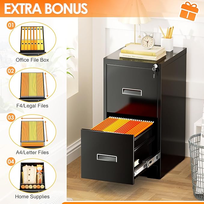 - 【Professional Storage Solutions】The vertical design of this file cabinet saves space. The 2 drawers accommodate Legal, Letter and F4 sizes, providing ample space for storing files and office supplies. The top right drawer holds file sorting cards, an essential tool for efficient file organization.
