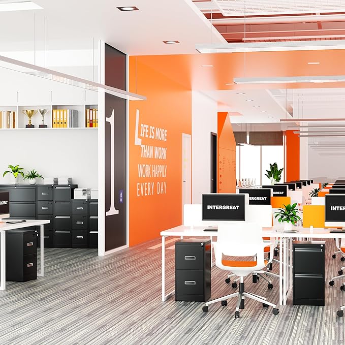 - 【High Strength Construction】The INTERGREAT Filing Cabinet features heavy-duty cold-rolled steel construction that resists rust and corrosion. The stylish look of rust-resistant painted black cabinets is easier to clean. Ball bearing full suspension drawers are easy to open and close with low noise.