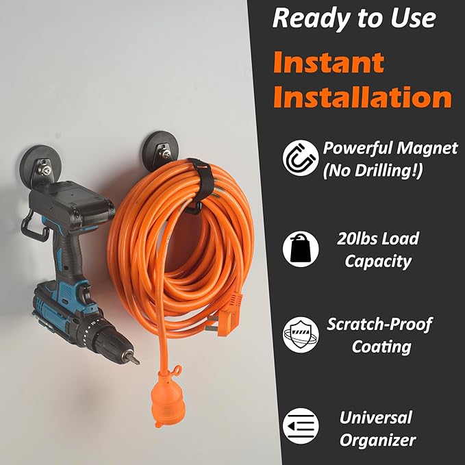 - Powerful Magnet Hooks: Experience enhanced reliability with updated hooks. They offer improved stability for a secure grip that keeps your tools safely in place, making them a refined choice for hanging cordless drills, tool boxes, and garden shovels.